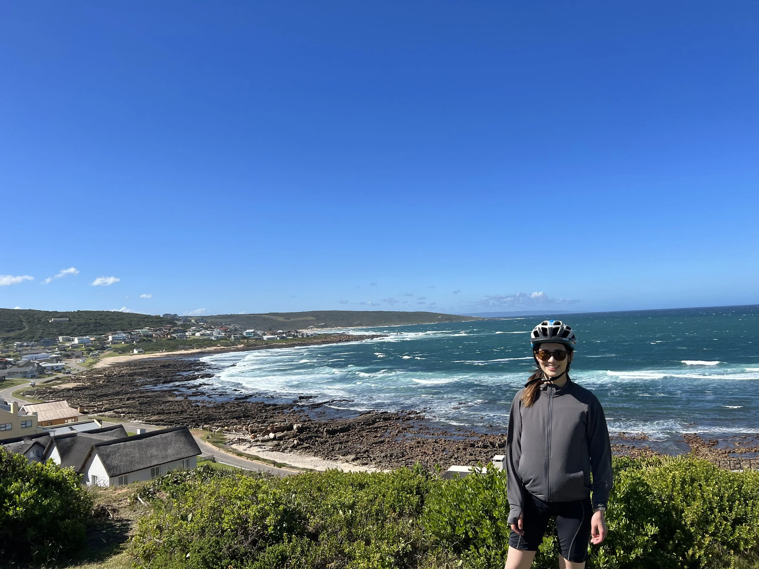 すると今度は隣の家に滞在中の男性が、私の大好物を持ってきてくれた!大好物とは、、言わずもがな。「買いすぎたから、よかったら食べて」と。今日は人の親切によく触れる日だ。午後はいつもより早い時間からサイクリングに。今日は隣町まで行く。ちなみに隣町は「jongensfontein」という名前で、「若い男の泉」という意味らしい。なぜ?とても気になる。さて、「若い男の泉町」に到着し、復路につく前に休憩することにした。海沿いのレストランが空いていたので、そこで飲み物を飲む。ここの店員さんも気さくで、外の席は寒くないかと気遣ってくれた。十分休んでから後半戦に突入。海沿いの道路を走るのは本当に気持ちがいい。風はいつも強いけれど…最近はサイクリングに慣れてきて、景色を楽しむ余裕も出てきた。